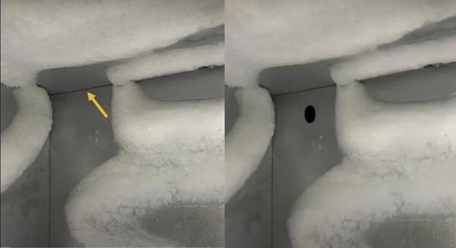 For Cold Wall and even for Auto-Defrost Ice Merchandisers, drill a one-inch hole out in an area where no coils are present at the back as pictured above.
